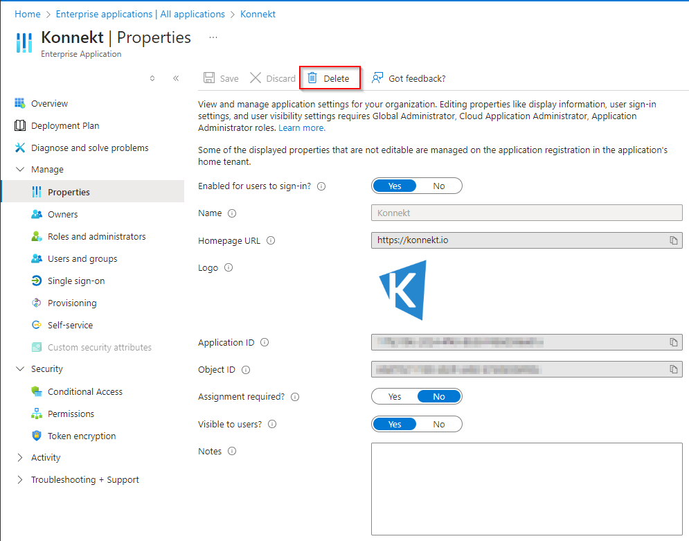 ## Delete KONNEKT permissions from Microsoft Entra ID (Azure AD) Enterprise Applications