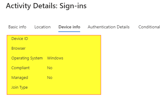 Check the "Device info" under Activity Details: Sign-ins